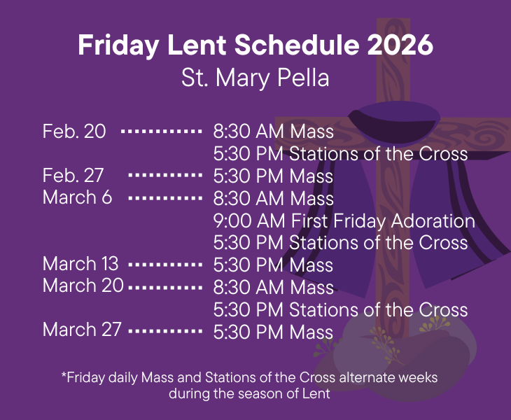 St. Mary Catholic Church is situated on 36 acres of beautiful prairie on the edge of town. Come and enjoy our outdoor spaces and the beauty of God's creation.
